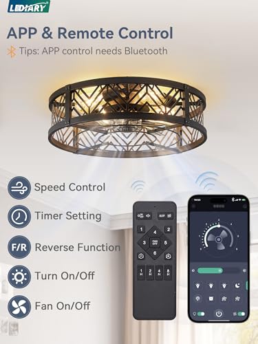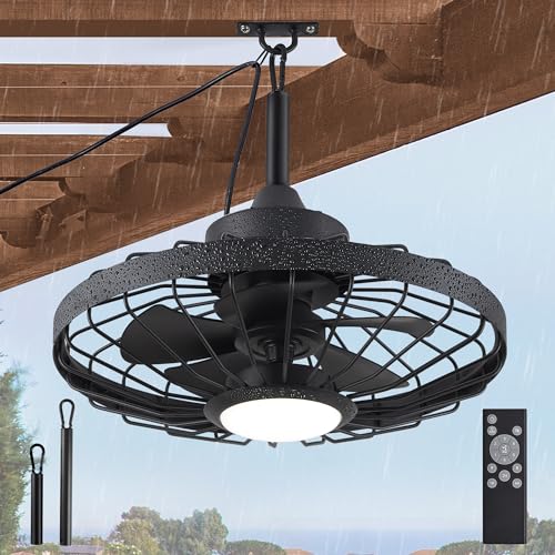 LEDIARY 22 inch Black Caged Ceiling Fan with Light Bladeless Industrial Ceiling Fan with Remote Farmhouse Fan Lights Ceiling Fixtures for Kitchen Bedroom Outdoor(6 Speed Timing)-Black Price in USA