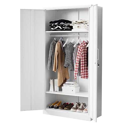 ACCOHOHO 72\" Tall Bathroom Storage Cabinet Farmhouse Storage Cabinet with 2 Drawers Adjustable Shelves & Barn Door Cabinet for Bathroom Living Room Kitchen Grey Wash Price in USA