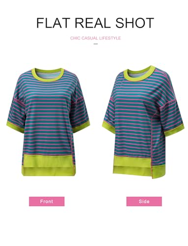 SHEWIN Womens Shirts Casual Crewneck Color Block Cute Summer...