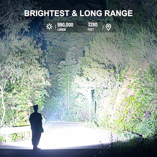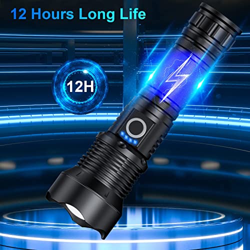 Rechargeable Flashlights High Lumens - 20 000 Lumens Super Bright LED Flash Light with LCD Digital Display Powerful Waterproof Flashlight for Camping Emergencies Home 5 Modes Zoomable