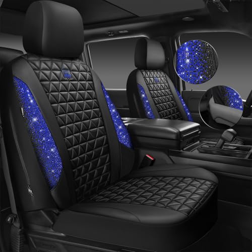 CAR PASS Bling Diamond Leather Car Seat Covers for Full Set Bling Rhinestone Universal Fit for SUV Sedan 1. MATERIAL: Leather Bling Diamond. made of high-grade leather which no odor and comfortable touch. It is breathable waterproof wear-resistant easy to clean and suitable for all seasons 2. SIZE COLOR: Blue diamond Black leather 3.PACKAGE INCLUDES: Front seat covers*2 Front backrests*2 Front hat covers*2 rear seat covers*1 rear hats covers*3. CAR PASS-excellent service 4.BEST SERVICE: We offer high quality car seat covers steering wheel cover and other car accessories set. We put product quality and your trust first. We do our best to provide you with quality service