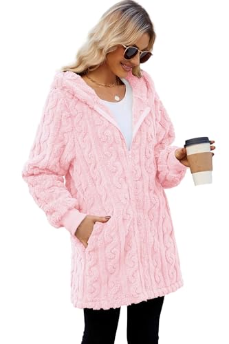 ReachMe Womens Oversized Sherpa Jacket Zip Up Fleece Jacket with Pockets Long Winter Coats Fuzzy Hoodie Teddy Coat(04 Twist Pink 2XL)