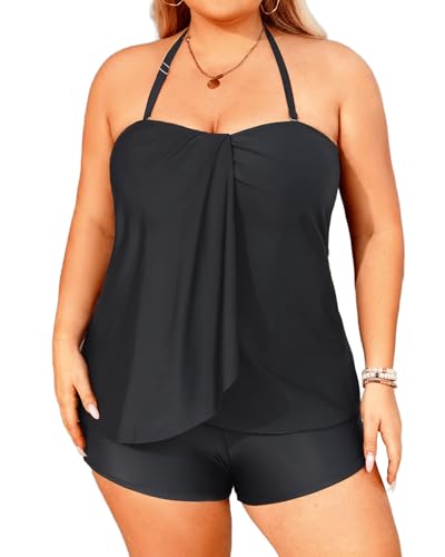 Daci Plus Size Bandeau Tankini Swimsuit for Women Two Piece ...