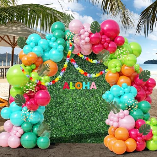 Tropical Balloon Arch Kit 161pcs Hawaiian Theme Rose Gold Co...