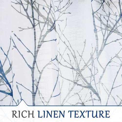 Blue White Curtains 84” for Living Room Grey Tree Branches P...