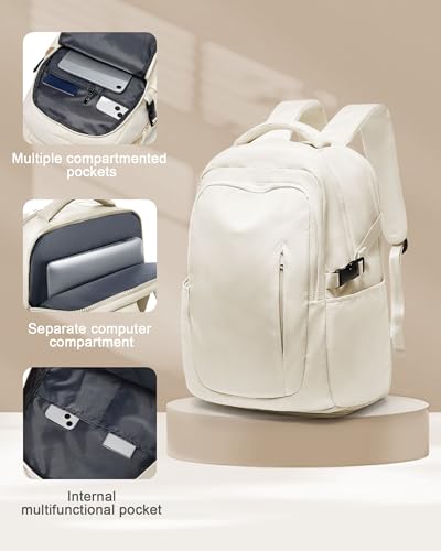 BAGSMART Travel Backpack for Women 30L Travel Backpack Carry On Flight Approved TSA Approved Personal Item Travel Bag Water Resistant Weekender Bag Luggage Daypack Beige