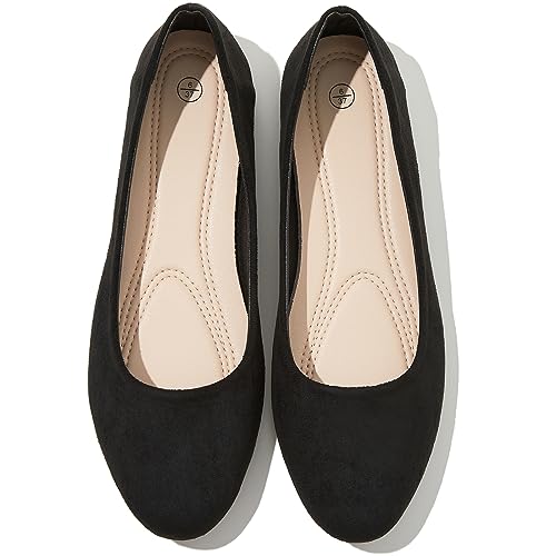 Shupua Flats for Women Round Toe Flat Shoes Dressy Black Bal...