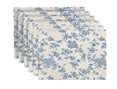 Pastoral Square Tablecloth - 52 x 52 Inch - Linen Fabric Table Cloth - Washable Table Cover with Dust-Proof Wrinkle Resistant for Restaurant Picnic Indoor and Outdoor Dining Floral (Dark Blue) Price in USA