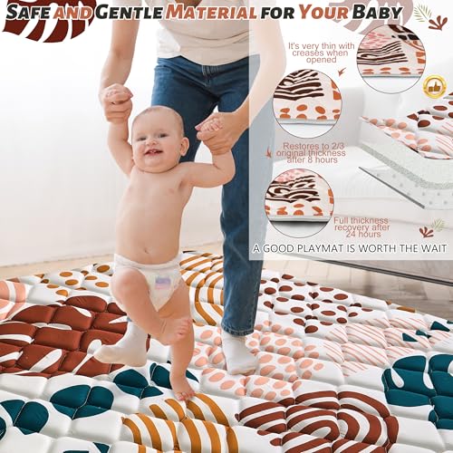 PLUUSHUU Baby Play Mats for Floor 50x50 Play Mat for Playpen Extra Thicker & Soft Baby Crawling Mat Foldable Non-Slip Floor Mat Cushioned for Infants Babies Toddlers Boho Leaf Design