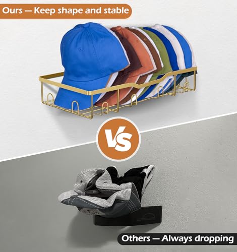 KEETDY Metal Hat Organizer for Baseball Caps Wall Hat Rack Fit 20 Caps Holder 2 Packs Sturdy Wall Mounted Hat Storage Organizer Gold Price in USA