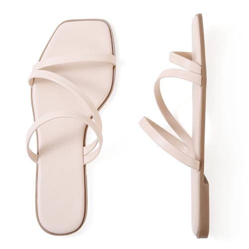 LACUONE Strappy Flat Sandals For Women Slip On Square Open T...