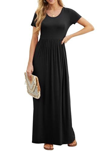 GRECERELLE Womens Summer Crew Neck Casual Loose Split Long Maxi Dress with Pockets (XX-Large PJ Black White) Price in USA