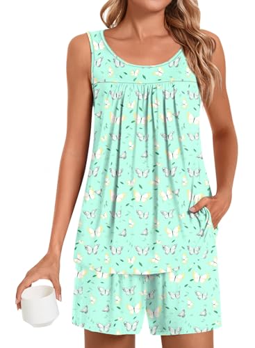 POPYOUNG Womens Summer 2 piece Pajamas Sets Sleevelesss Tank...
