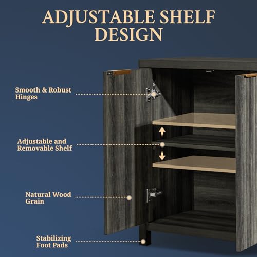 Tribesigns Set of 2 Sideboard Buffet Cabinet with Storage 59"" Buffet Cabinet Sideboard Cabinet with Doors & Adjustable Shelves Freestanding Accent Storage Cabinet for Living Room Dark Brown