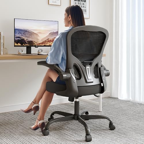 Office Chair Ergonomic Desk Chairs 330LBS Capacity High Back Mesh Computer Chair with Flip-up Armrests Comfy Work Chair with Adjustable Lumbar Support Rolling Swivel Executive Task Chair Black Price in USA