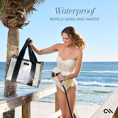 Case-Mate Large Tote Bag | Silver Chrome Shoulder Bag with Phone Pouch | Tip-Proof Clear Waterproof Travel Tote for Women | Foldable & Washable Handbag for Work Travel Gym Beach & Pool Price in USA