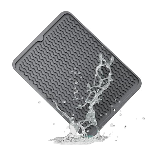 Large Stone Dish Drying Mat for Kitchen Counter Eco-friendly Instant Drying Pad Diatomaceous Earth Water Absorbing Mat Foldable and Super Absorbent Dish Drying Stone Mat 24""×16"" Dark Gray Price in USA