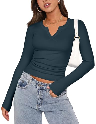 Zeagoo Sexy Shirts for Women Long Sleeve Fitted Tops Solid P...
