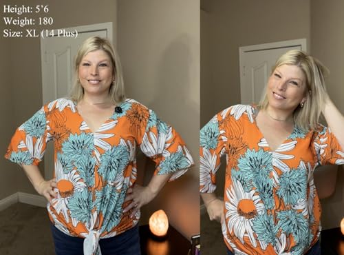 Zeagoo Linen Tops for Women Loose Fit Floral Button Up Shirt Women Orange Tropical Price in USA