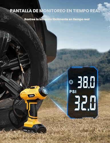 EASY TO CARRY: The Pocket Air Pump tire inflator portable air compressor by Bullseye Pro is engineered to fit comfortably in your glove box backpack or even your pocket! Whether you're on a road trip biking adventure or simply commuting its ultra-compact size ensures that you’re always prepared. Weighing less than a pound this car tire air pump portable gives you peace of mind wherever your journey takes you. QUICK INFLATION: Despite its small size the Pocket Air Bullseye Pro Tire Inflator packs a powerful punch. Equipped with a high-performance motor it inflates standard car tire pump in just a few minutes. With a maximum pressure of 100 PSI Pocket Air Pump is suitable for a variety of vehicles from cars and bikes to motorcycles and inflatables. This portable tire inflator for car saves time and keeps you safe with a reliable and fast solution. EASY TO READ GAUGE: Never worry about over-inflation again! The Pocket Air Bullseye Pro Tire Inflator features a built-in digital