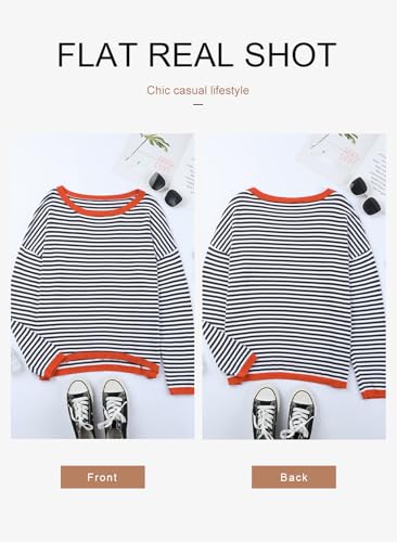 Dokotoo Womens Round Neck Sweaters Fashion Fall Striped Colo...
