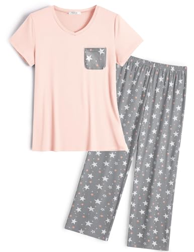 Ekouaer Pajama Sets for Women 2 Piece Short Sleeve Pj Sets W...