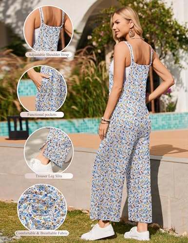 Ekouaer Womens Casual Sleeveless Jumpsuits Summer Boho Wide ...