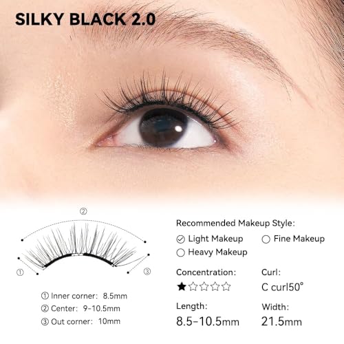 WOSADO Magnetic Eyelashes with Applicator Kit No.17 Ice Black Reusable Magnetic Lashes without Eyeliner Glue-free False Lashes Waterproof Lightweight Suit for Heavy Makeup
