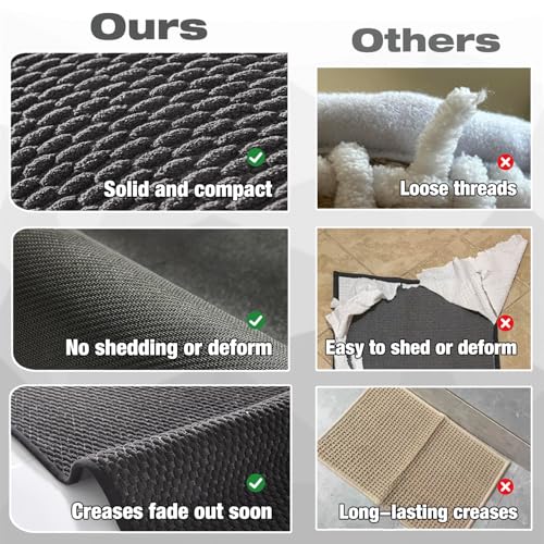Bath Mat Bathroom Rugs Non Slip Washable Thin Absorbent Quick Dry Bath Mat Fits Under Door Bathroom Floor Mat Perfect for Bath Shower or Sink 16""x24"" Dark Grey