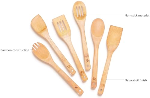 Riveira Premium Brown Bamboo Wooden Spoons for Cooking Set of 9 – Premium Brown Bamboo Wooden Cooking Utensils Wooden Spatula Wooden Spoon - Premium Quality Wooden Utensil Set for Non-Toxic Cooking Price in USA