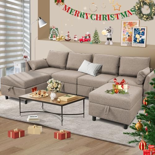 SEJOV Modular Sectional Sofa with Storage Convertible 6 Seat Sectional Couches for Living Room Linen Fabric Sectional Sofa Couches for Living Room Dark Grey