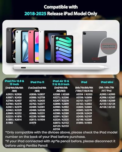 Stylus Pen for iPad Apple: Fast Charge for iPad Pencil Apple Pen with Palm Rejection Tilt Sensitivity - Pen for iPad 10/9/8/7/6 iPad Pro 12.9""/11""/13"" M4 iPad Mini 6/5 iPad Air 5/4/3/11""-13"" M2