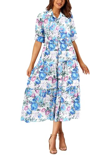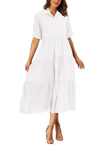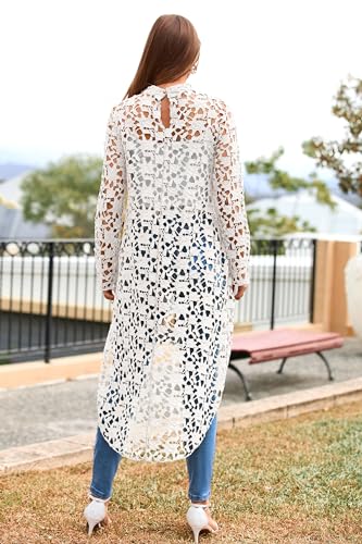 PRETTYGARDEN Women's Long Puff Sleeve Mini Dress Hollow Out Lace V Neck A Line Ruffle Casual Holiday Party Dresses (White Medium) Price in USA