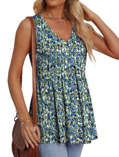 OFEEFAN Women's Summer Babydoll Tank Tops Sleeveless V Neck ...