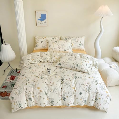 HighBuy Floral Duvet Cover Queen Boho Cozy Cotton Aesthetic Coquette Bedding Set Queen Yellow Flower Botanical French Style Comforter Cover with Zipper Soft Lightweight Duvet Cover Set for Queen Bed Price in USA