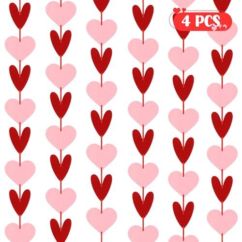 Specifications & Details: The Heartome 5.4 FT Valentines Garland is made of high-quality felt and features 10 hearts in pink and red hues. Each garland measures 5.4 FT long, making it perfect for decorating large spaces or creating a beautiful backdrop for photos. The package includes 4PCS Valentine garlands, providing ample decoration for your event or home.