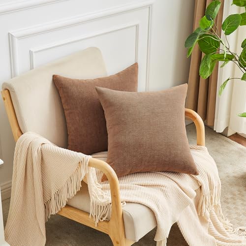 GAWAMAY Decorative Chenille Throw Pillow Covers 24x24 Inch Pack of 2 Soft Square Couch Pillow Cover for Sofa Cushion Living Room Bedroom Solid Dyed Pillowcases Coffee 60x60cm (NO Insets) Price in USA