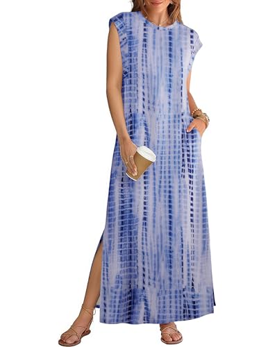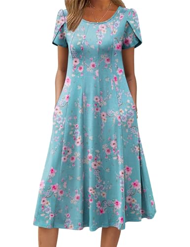 Zeagoo Cotton Sundresses for Women Round Neck T Shirt Dress Floral Beack Dress A-Line Midi Flowy Loose Dress Casual Sleeveless Tank Dress with Pockets M Price in USA