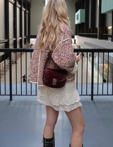 Omoone Women's Cropped Quilted Jacket Floral Printed Lightwe...