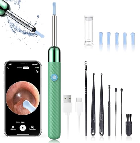 Specifications & Details: This earwax removal kit comes in a green color and has a size of L. The ear cleaner is designed to be used with a compatible device, allowing users to capture and view images or videos of their ear canal. The product's dimensions and weight are not specified, but it is designed to be portable and easy to use.