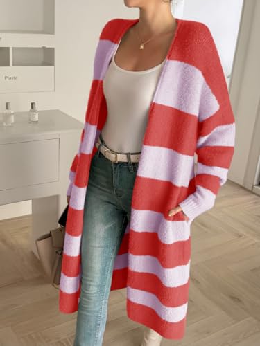 Saodimallsu Womens Striped Long Cardigan Sweaters Open Front...
