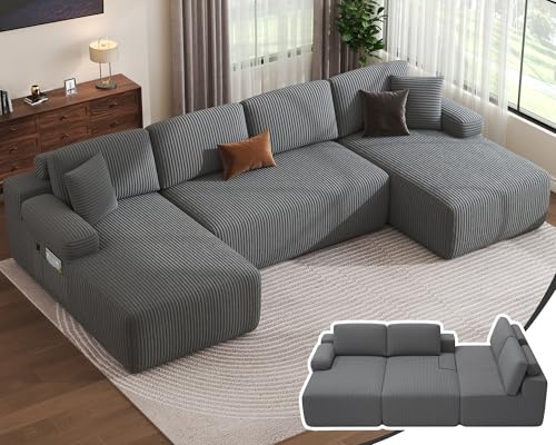 Oprisen Modular Sectional Sofa Comfy Cloud Couch Sectional Sofa with Ottoman Chenille Sofa Sleeper Deep Seat Sofa with Throw Pillows for Living Room (Blue 120\"- L Shape) Price in USA