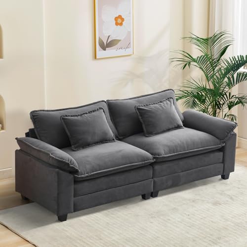 Oprisen Modular Sectional Sofa Comfy Cloud Couch Sectional Sofa with Ottoman Velvet Sofa Sleeper Deep Seat Sofa with Throw Pillows for Living Room (Blue Gray 86\"- Loveseat) Price in USA