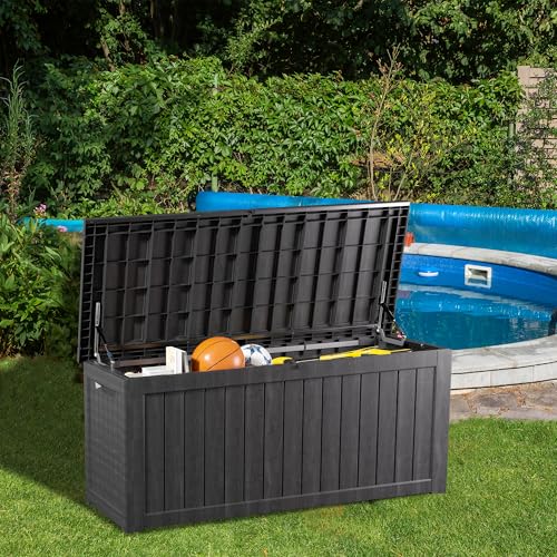 TARKARI 120 Gallon Resin Deck Box Waterproof Outdoor Storage Box Lockable for Patio Furniture Garden Tools Pool Accessories UV-Resistant for All Weather Use Black