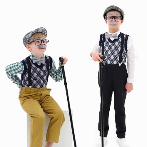 SOMSOC 13 Pcs Old Lady Costume for Kids Girls 100th Day of School Grandma Costume Granny Dress with Shawl Wig for Cosplay Price in USA