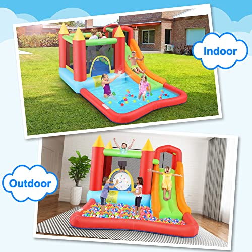 10 in 1 Bounce House - This giant bounce house features a variety of play areas including Large Pool Dual Slide Jumping Area Basketball Hoop 2 Water Cannons Soccer Net Climbing Wall Punching Game Water Sprayer Vertical Shower Sprayer catering to every child's needs. Our inflatable bounce house can accommodate multiple children playing together guarantees hours of entertainment and encourages physical activity and social interaction