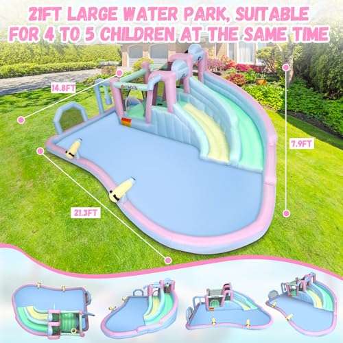 AKEYDIY Inflatable Bounce House Double Slides for Kids Giant Bounce Castle 21.3FT x14.7FT with Pool Multiple Game Areas and 950w Blower for Party Holiday Outdoor Indoor (Dual Slide - Macaron)