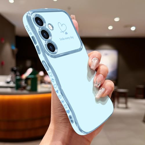 LCHULLE for Samsung Galaxy A16 4G/5G Case for Women Girls Cute Wave Frame Curly Shape with Love Heart Camera Protection Cover Luxury Plating Shockproof Phone Case for Galaxy A16 4G/5G Baby Blue Price in USA