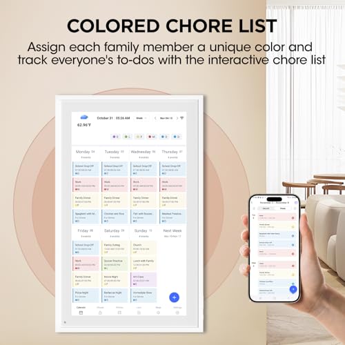 DASFIWO 21.5 Inch Digital Calendar Planner & Smart Chore Chart Full HD Interactive Touchscreen Display for Family Schedules - Include Desk Stand and Wall Mountable
