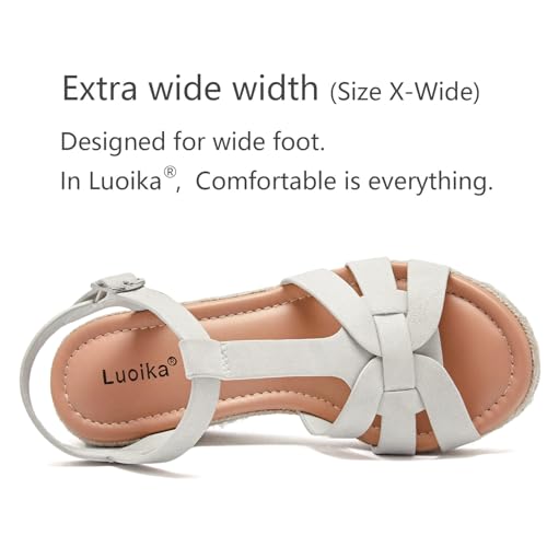 Luoika Women's Wide Width Wedge Sandals Ankle Strap Flat Low...